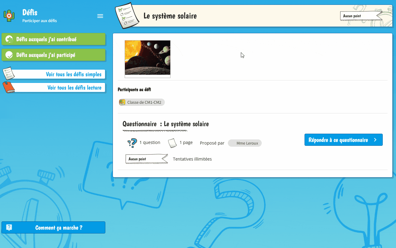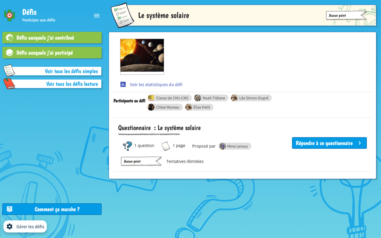 Le directeur peut lancer un défi inter-écoles ou inter-classes.
