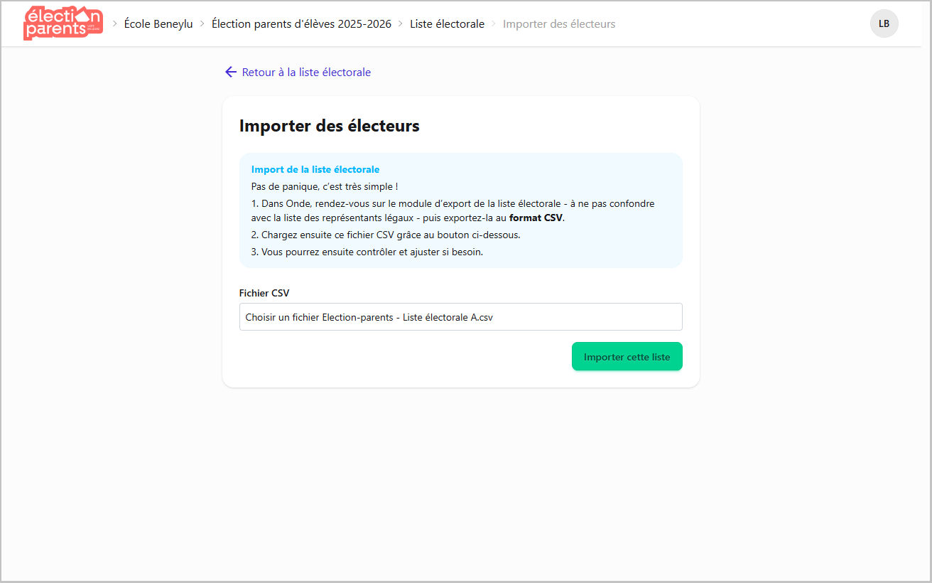 Vous importez la liste électorale depuis Onde puis envoyez automatiquement les liens de vote par email.