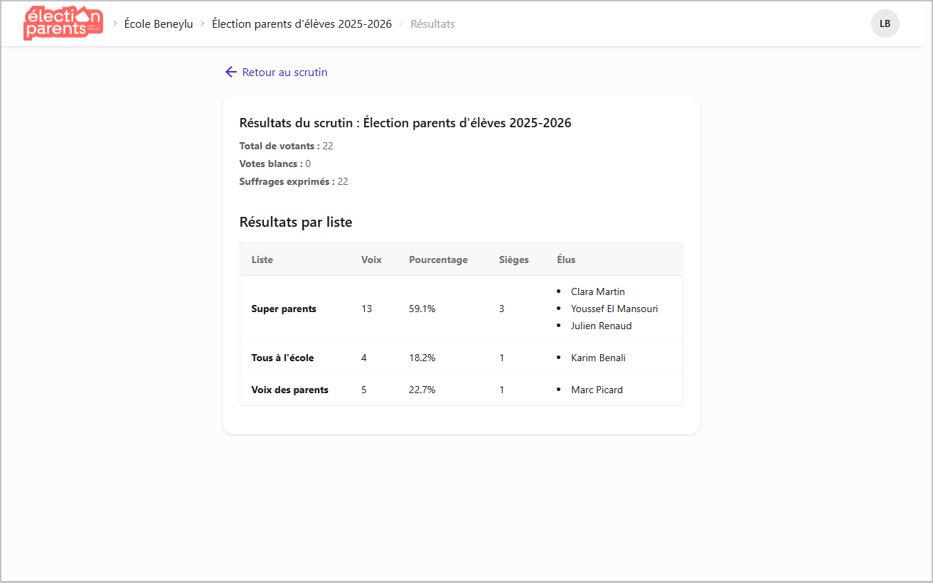 Élection-parents permet de voter en ligne, sans gâchis de fournitures et de dépouiller automatiquement en 1 clic.