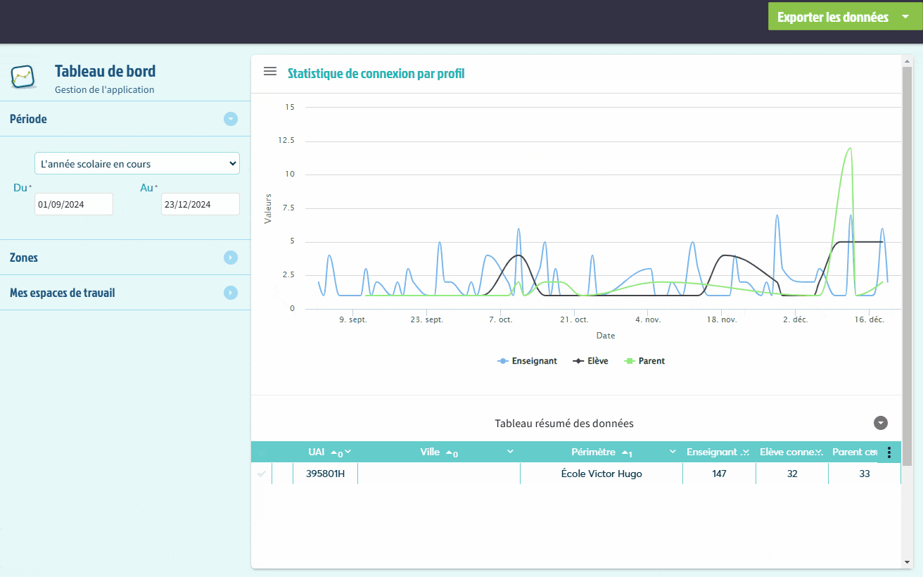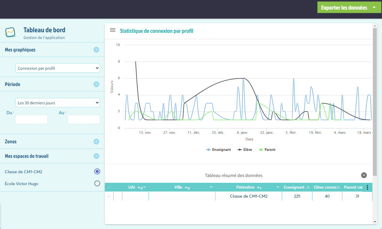 Vous pouvez exporter les données, c’est pratique pour les conseillers pédagogiques qui accompagnent les projets.