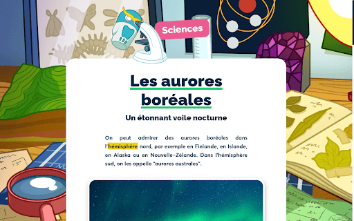 Le journal présente un savoir, son lexique, un fait insolite, les sources et des jeux chaque jour de l'année scolaire, même le weekend.