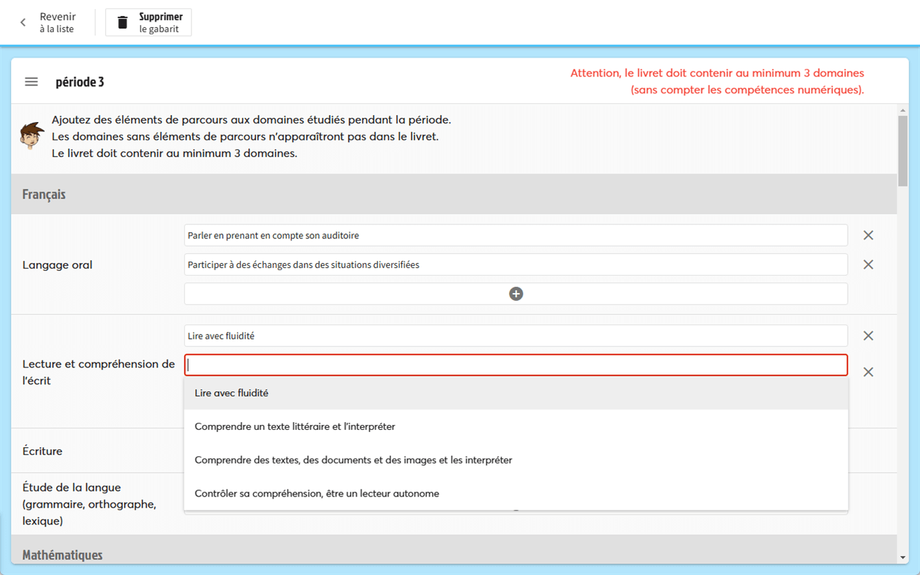 Le livret scolaire propose des référentiels préremplis et personnalisables.