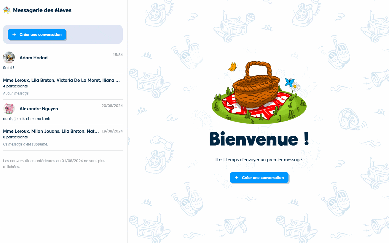 La messagerie des élèves a une vocation pédagogique, elle est volontairement calme et dotée d’outils de signalement accessibles.