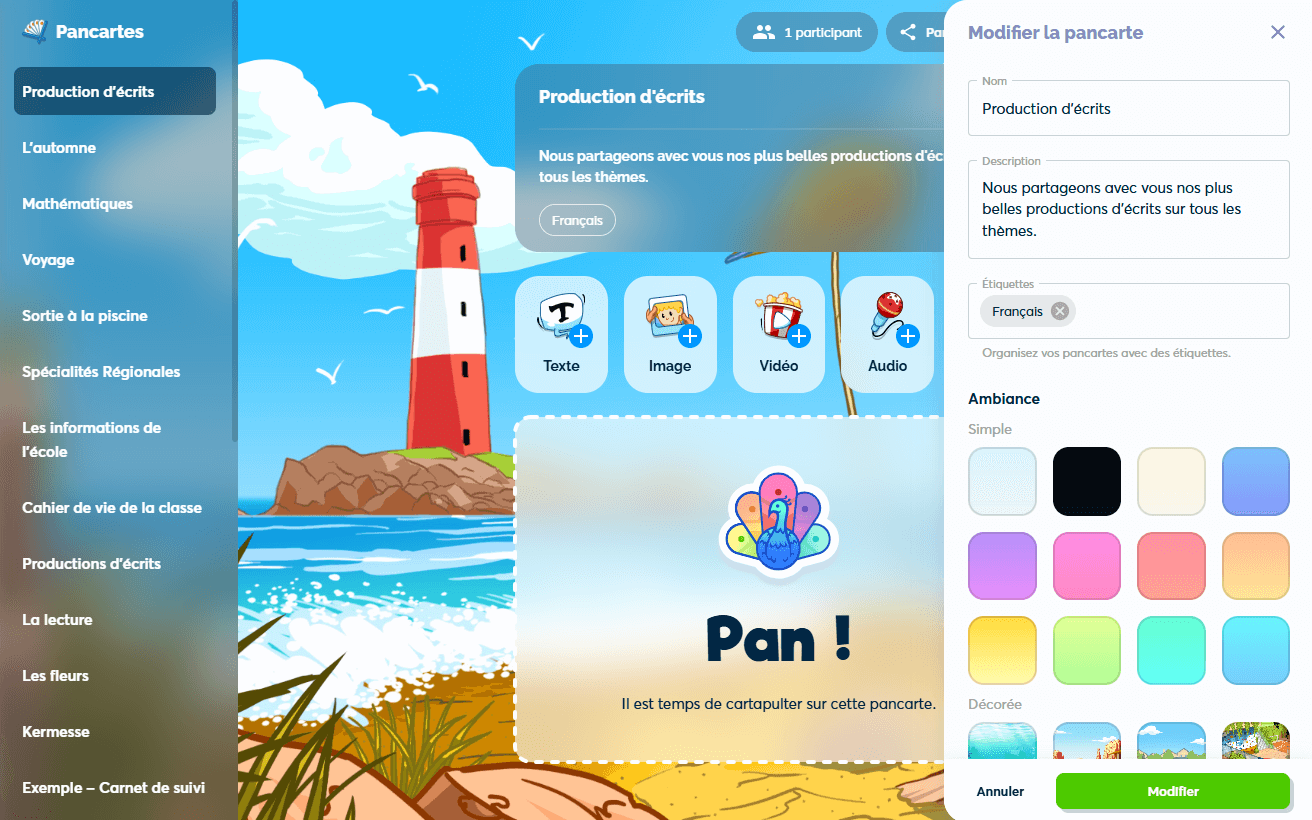 Les pancartes permettent de fabriquer de superbes cartes multimédias dès la maternelle, dans une ambiance qui en jette !